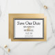 Your Save Our Date cards will shine with this white, black and faux gold foil look. Their beautiful gold border with black inset frames, gold script font for the words Save Our Date and for the ampersand, and black wording in a classic yet modern font will have your guests excitedly waiting to celebrate your love with you. The coordinating back is stunning and gives the cards a formal yet modern feel. These save the date cards are super easy to customize and make your own. Simple select Personalize this template and type in your information. In seconds you will see how exquisite your Save Our Date cards will look.