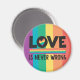 Colorful rainbow LGBTQ pride month playing cards featuring the caption "Love is never wrong" in black all caps modern fonts decorated with a little rainbow heart and a colorful stripe on.