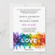 🤍 The central word—LOVE—stands proud in crisp white letters, a powerful declaration in the heart of every hue. It's framed by a poetic passage that reads like a vow to individuality and togetherness: "We invite you to share in the joy of a love that reflects every color of who we are; bold, beautiful, and boundless.
