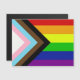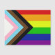 The "Progress" variation of the Rainbow flag adds a chevron along the hoist that features black, brown, light blue, pink, and white stripes to bring those communities (marginalized people of color, trans individuals, and those living with HIV/AIDS and those who have been lost) to the forefront; "the arrow points to the right to show forward movement, while being along the left edge shows that progress still needs to be made."