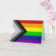 The "Progress" variation of the Rainbow flag adds a chevron along the hoist that features black, brown, light blue, pink, and white stripes to bring those communities (marginalized people of color, trans individuals, and those living with HIV/AIDS and those who have been lost) to the forefront; "the arrow points to the right to show forward movement, while being along the left edge shows that progress still needs to be made."