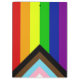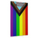 The "Progress" variation of the Rainbow flag adds a chevron along the hoist that features black, brown, light blue, pink, and white stripes to bring those communities (marginalized people of color, trans individuals, and those living with HIV/AIDS and those who have been lost) to the forefront; "the arrow points to the right to show forward movement, while being along the left edge shows that progress still needs to be made."