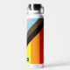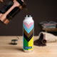 Vacuum Insulated Bottle: Rainbow Flag, Custom Name & the "Progress" variation adds a chevron along the hoist that features black, brown, light blue, pink, and white stripes to bring those communities (marginalized people of color, trans individuals, and those living with HIV/AIDS and those who have been lost) to the forefront; "the arrow points to the right to show forward movement, while being along the left edge shows that progress still needs to be made.