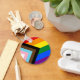 Keychain: Rainbow Flag & the "Progress" variation adds a chevron along the hoist that features black, brown, light blue, pink, and white stripes to bring those communities (marginalized people of color, trans individuals, and those living with HIV/AIDS and those who have been lost) to the forefront; "the arrow points to the right to show forward movement, while being along the left edge shows that progress still needs to be made.