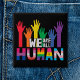 Spread some equality and show the world that you are a proud LGBTQ community member or that you support the LGBT community with this colorful gay pride awareness button that features an illustration of rainbow-colored hands with the quote "We are all human".
