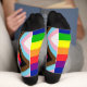 This fun Halloween socks are bright and colorful. The small print is crisp and shows the fun details. The softness of the socks feels nice on my feet and ankles. .