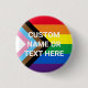 Inclusive rainbow Lgbtq gay flag custom pin button. With fully customizable white text.