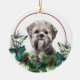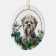 Lhasa Apso Dog Evergreen Berry Wreath Ceramic Ornament