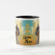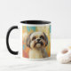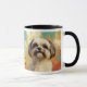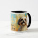 This cute mug celebrates the adorable Lhasa Apso dog! Two sides of the mug have a beautiful portrait of a little Lhasa Apso against a background splashed with color, including orange, gold, blue, creamy white, and more. At the center is script that says Lhasa Apso, but you may change it or even personalize it, if you wish. This mug will get noticed!