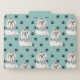 An image of an adorable little Lhasa Apso Dog wearing a bow tie is on this set of file folders. Each individual folder has the dog amid a pattern of black paw prints. There is one folder with a light gray background, one with a light mint green background, and one with a light gray blue background, so you can easily identify each separate folder. The insides match the background color of the outsides. Perfect for keeping your dog records in, or just for fun!
