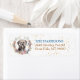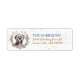 The left side of these return address labels feature an image of a spring flower wreath in colors of soft pink, blue, gold, green and cream. At the center is a portrait of an adorable Lhasa Apso Dog. Tiny gold confetti gives a subtle sparkle to the background. Your custom text is in blue and brown gold at the right.