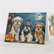 Unleash the spooky spirit with this eerie Halloween design featuring a pack of dogs under a dark, moonlit sky, surrounded by flying bats and glowing pumpkins. Perfect for those who love a touch of frightful fun with their furry friends!