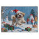 Lhasa Apso Running in Snow with Christmas Hat Cutting Board