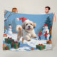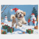 Lhasa Apso Running in Snow with Christmas Hat Fleece Blanket