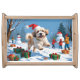 Lhasa Apso Running in Snow with Christmas Hat Serving Tray