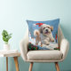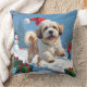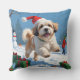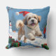 Lhasa Apso Running in Snow with Christmas Hat Throw Pillow