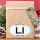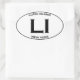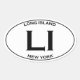 This Euro style oval sticker includes the letters "LI" as well as subtitles "LONG ISLAND" and "NEW YORK". Long Island is known for its beaches, sharks, saltwater fishing, and other attractions.