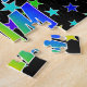 This vibrant and exciting birthday-themed jigsaw puzzle design features the message "HAPPY BIRTHDAY, LIAM" with the characters having a colorful rainbow spectrum inspired gradient pattern, along with a fun star field background pattern. A colorful puzzle like this might be a fun way to acknowledge the birthday of somebody named Liam. [~Z0000468]