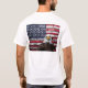 On the back of the shirt, there is a large image of an eagle in front of an American flag printed on a brick background, adding a modern and artistic touch to the design. This T-shirt is perfect for those who take pride in their patriotism and want to wear a symbol of liberty and justice. It is suitable for all casual occasions and makes a great addition to any wardrobe.