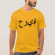 The shirt is good quality and fits just fine, but the colors of the printing are not as bright as in the sample photo. Not the best. The colors are a lot brighter in the sample photo; when I received the shirt they appeared faded. The red looks a little more pink and the blue is a lot lighter. N.B. I did not wash the shirt yet.
