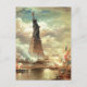Vintage illustration of the Statue of Liberty standing tall against the clouds and amidst a sea battle