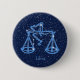 Button in the zodiac symbol for Libra in soft silver blue, overlaid with the stars of the constellation, against a starry sky background of deep midnight blue