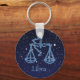 Keychain featuring the zodiac symbol for Libra in soft silver blue, overlaid with the stars of the constellation, against a starry sky background graded from deep midnight blue to black.
