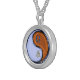 I chose gold plated so that the metal would not react with my skin oils and perspiration. But, I changed the necklace from the gold plated one to a sterling silver. My skin cells will tarnish the silver. But it will not look as bad if some portion of the gold plated necklace somehow became compromised. Zazzle did a find job turning the picture into a pendant for me. As you can see, the colors and the printing of the final product, match the preview. The picture I took is not very clear. But I am pleased with the product I received.