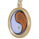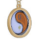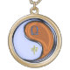I chose gold plated so that the metal would not react with my skin oils and perspiration. But, I changed the necklace from the gold plated one to a sterling silver. My skin cells will tarnish the silver. But it will not look as bad if some portion of the gold plated necklace somehow became compromised. Zazzle did a find job turning the picture into a pendant for me. As you can see, the colors and the printing of the final product, match the preview. The picture I took is not very clear. But I am pleased with the product I received.