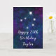 This cosmic and celestial birthday card can be personalized with a name or title such as mom, daughter, granddaughter, niece, friend etc. The design features the Libra zodiac constellation on a dark blue and purple watercolor galaxy background with scattered stars. The text combines handwritten script and modern serif fonts for a stylish and classic look. This is perfect for anyone interested in star signs and astrology.