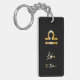 Elegant zodiac sign keychain with gold design on black background.