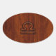 Libra Zodiac Symbol on mahogany style print Oval Sticker