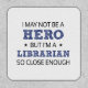 I may not be a hero, but I'm a Librarian, so close enough - humorous word art in sans-serif and doodle cross-hatch font lettering in black and dark blue.