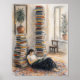 book lover, reading nook, library art, book stack, reader gift, literary decor, cozy sketch, bookish print, study room, reading art, home library, wall decor, vintage style