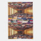 This kitchen towel will take you on a walk down long aisles of books in the stacks of a huge library. The bright lighting reveals book spines in a kaleidoscope of colors: red, green, blue, black, white, gold, brown, purple. The symmetrical angle creates a geometric abstract pattern that seems to lead to infinity.