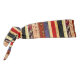 This double-sided, moisture-wicking, tie-back athletic headband displays a shelf of colorful books. They form an interesting abstract geometrical pattern in colors of green, yellow, red, blue, black and pink.