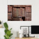 Poster featuring a photo image of leather bound books in a library.