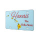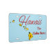 Aloha! Hawaii -- our jewel in the Pacific. Hawaii consists of eight MAIN islands: Niihau, Kauai, Oahu, Maui, Molokai, Lanai, Kahoolawe and the "Big Island" of Hawaii. The "Big Island" is getting even bigger. It is estimated that the island of Hawaii grows by more than 40 acres every year because of the Kilauea Volcano which has been erupting for nearly 30 years. Though the official nickname is "The Aloha State", Hawaii is also known as "The Islands of Aloha" and "Paradise". And, no wonder. The island is lush and tropical with exotic agricultural products like pineapples and cacao and vanilla and coffee. And, the islanders are well aware of their strengths, having passed laws that prohibit billboards and, in some cases, prohibit buildings being built taller than the palm trees . . . nothing to spoil the spectacular views. And it's not just the amazing varieties of plants and flowers, the beaches of the Hawaiian islands can have gold, red, black or even green sand. The Hawaiian islands have a beautiful and rich history, extending back as far as 124 A.D. Other than the plethora of tourists lucky enough to vacation in this lovely state, the folks that live there are, generally, broken into two catagories: "Hawaiians" are those with native ancestry from the islands; "locals" are those that are born and raised there but have no ancestral connection. Many people are unaware that when Pearl Harbor was attacked in 1941, Hawaii had not yet become a state. Hawaii became our 50th glorious state in 1959. This delightful design, celebrating the LAST official state in the United States, offers an outline of the Islands of Hawaii, filled with their state flower, the stunning, yellow hibiscus. This is layered with a flame red "Hawaii". This lovely, vanity plate is a terrific way of announcing your Hawaii heritage or, perhaps, just letting folks know where you are planning your next vacation.