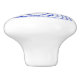 A delightful toile-inspired drawer knob in blue willow colors featuring a kitty cat licking himself.