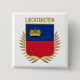 The national flag of Liechtenstein is infused into a faux gold shield shape which is set upon faux gold leaves.