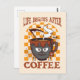 Brew up some magic with this spellbinding postcard featuring the phrase “Life Begins After Coffee.” A witch-inspired coffee brew, complete with mystical details like a bubbling cauldron cup, or floating steam spells, captures the perfect blend of caffeine and Halloween charm. For those whose day truly starts with a magical mug in hand.