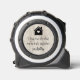 Tape measure gift for couples features an image of a home with heart shape along with wording that personalized with a quote or other preferred wording. Default wording says "I love the life that we've built together", along with the name of the person it is from. Includes a rustic white faux wood grain background image.