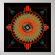Sun, Giver of Warmth & Life; Round of Eagle Feathers connotes relation to Sun, Life’s Circle, and Creator. In the center is Sun and the Four Winds. The Red, Black, Yellow, and White represent the Four Peoples of Mother Earth. Four rays emit Creator’s power from the Circle of Life. Four is a sacred number embodied in the Earth with its four directions; in the year, with its four seasons; in the day, with the sunrise, noon, evening, and night; in life, with its four divisions: Childhood, youth, manhood, and old age. Everything is bound together in a Circle of Life and Love, without beginning, without end. The Four arrows depict the power to break through any bond fetters the harmony of Life.