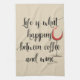 Life Happens Between Coffee Wine Handwritten Kitchen Towel