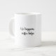Here's a gift idea for all hot drink lovers. A mug featuring the words "Life happens, coffee helps" to inspire and motivate them with their morning coffee. Simple black typography on white.