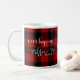 Fun and stylish red and black checkered Buffalo plaid pattern and coffee pun phrase "Life Happens Coffee Helps" personalized mug with attractive coffee image on the middle with area for your Initial. If you prefer design without monogrammed mug you have the ability to erase them by selecting customize further. Great Holiday gift!