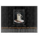 "Life Happens Over Coffee," chalkboard artwork hand designed by internationally licensed artist and product designer, Audrey Jeanne Roberts. The pottery Latte cup, saucer and chocolates with raspberries artwork was painted in watercolor and combined with a coffee bean border and hand drawn chalk white striped edge pattern. Copyright.
