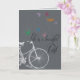 Greeting card with dark gray background, image of bicycle and colorful butterflies. Words or "Life is a beautiful ride" on the front. Inside is decorated in a lighter gray but blank of words for your personal message.