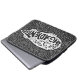 The sleeve is made of nice feeling material and seems very durable. I'm not sure how easy it'll be to clean, but the construction seems sound and the fabric is quick thick. I also like the double zipper. The printing is lovely and appears durable. The white on black contrast is nice, and the design very elegant.
