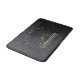 Bath mat with a gold colored illustration on a black-gray background. Designed with an illustration of a mountain with the suns rays shining outward from behind. Typography says: Life is an Adventure explore dream discover.
